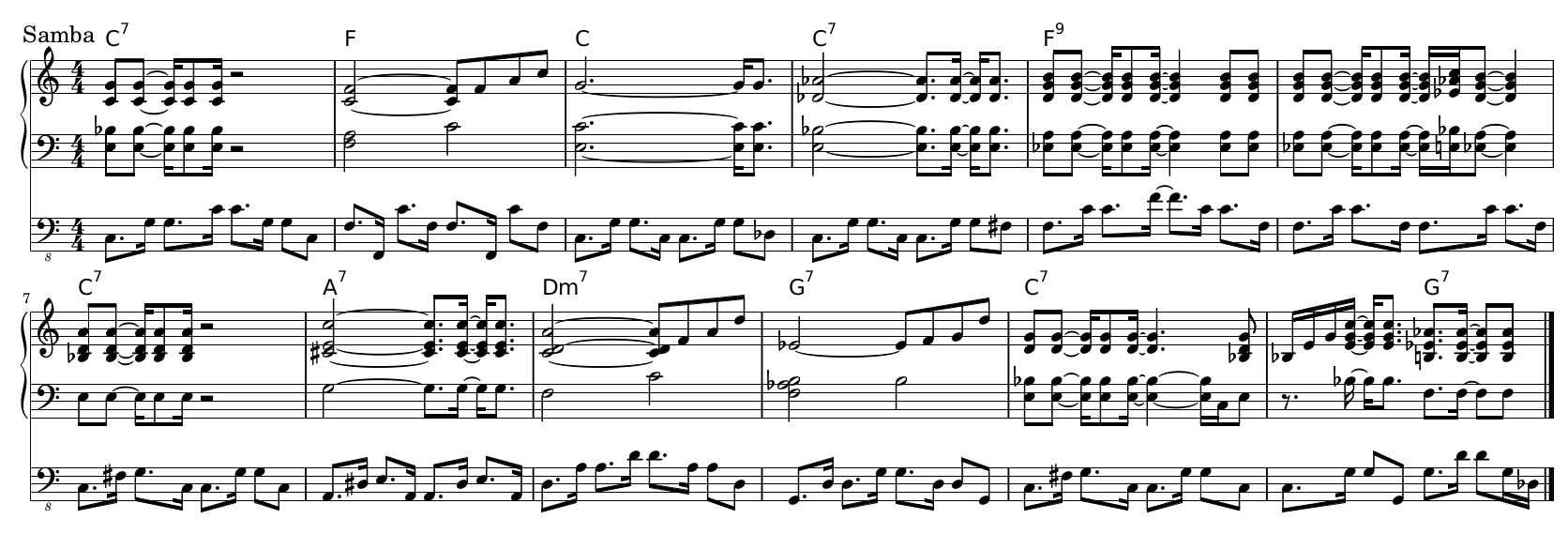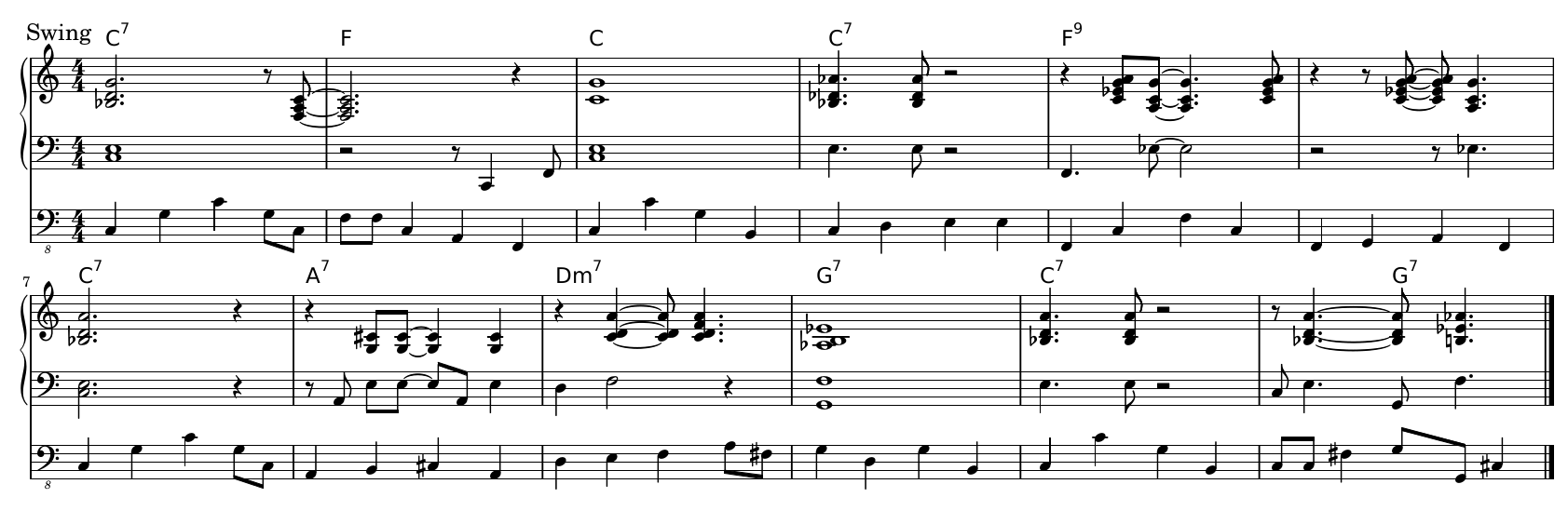 To sum up, unsupervised translation is tricky to pull off; on the other hand, supervised translation requires large amounts of aligned training examples. I decided to work around the latter issue by creating a synthetic training dataset using the Band-in-a-Box software, which allows generating song accompaniments in many different styles. To give you an idea of what Band-in-a-Box can do, here are accompaniments in two different styles, generated based on the same blues chord sequence: